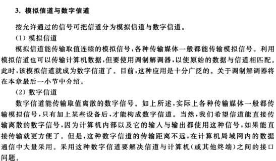 在通信网的发展初期,所有的通信信道都是模拟信道。但由于数字技术的高速发展,数字信道可提供更高的通信服务质量,因此,过去建造的模拟信道正在被数字信道所代替。现在计算机通信所使用的通信信道在主干线路上已基本是数字信道。