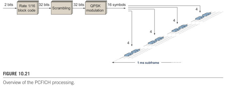 系统对于每一个DCI(Downlink Control Information) 根据信道质量可能分配给1/2/4/8个逻辑上连续的CCE进行传输。以下图为例,用户1的CCE个数为1,用户2的CCE个数为2,用户3的CCE个数为4.可以看到每个用户CCE的起始位置mod占用CCE的个数n均为0,这样分配的好处是节省忙检测的复杂度。以用户4的PDCCH为例,其第一个CCE由9个REG组成,每个CCE的信息通过交织离散的分布在PDCCH所占用的时域(三个OFDM符号)和频域(整个带宽)上,以减少小区间干扰和获得时域上的分集。另外,可以看到LTE规定PDCCH的起始CCE必须是所占用CCE个数的整数倍。