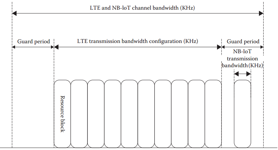 UE使用12个子载波,子载波带宽为15KHz(带宽为180KHz)在下行链路中工作,并且在上行链路中使用具有3:75或15KHz或者3,6的子载波带宽的单个子载波, 或12个副载波,子载波带宽为15KHz。