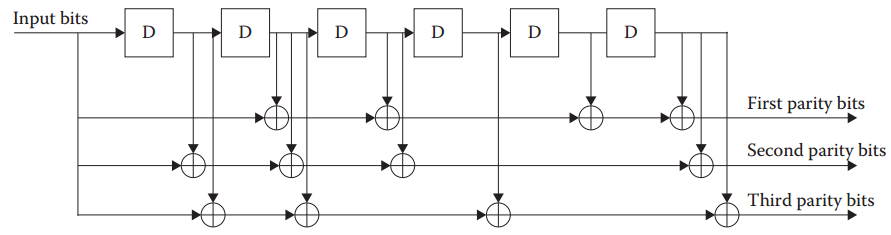 turbo编码器的输入位是b0; b1; b2; ::: ;; b B -1其中B是传输块比特和CRC奇偶校验比特。 turbo编码器的输出为s0 / k; p1 / k; p2 / k其中s是系统位,p 1 / k和p2 / k是第一和第二奇偶校验位,k = 0; 1; 2; ::: ;; K-11,K = B + 4。