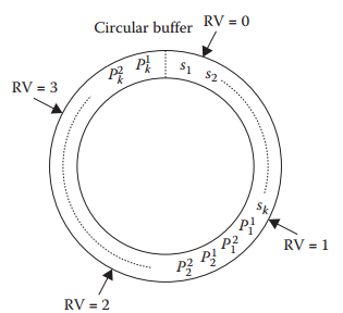 将交错的比特插入循环缓冲器中,首先插入系统比特,然后交替插入第二和第三个奇偶校验比特,如图7.28所示。比特选择从循环缓冲器中提取连续比特,其范围与分配给传输的资源块中的可用资源元素的数量(即,软缓冲区大小)相匹配。要提取的精确比特集取决于对应于从循环缓冲器中提取编码比特的不同起始点的RV。 RV有四种不同的选择。比特选择的输出序列用e0表示; e1; e2; ::: ;; e E -1,其中E是速率匹配位的数量。并非所有RV都用于NPUSCH,并且仅使用RV = 0或RV = 2。