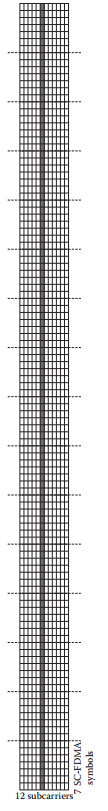 符号数Nsym被分成多个组,每组由N个RU / sc调制符号组成,并且对应于一个SC-FDMA符号。 N RU / sc是子载波的数量,如表7.16所示。