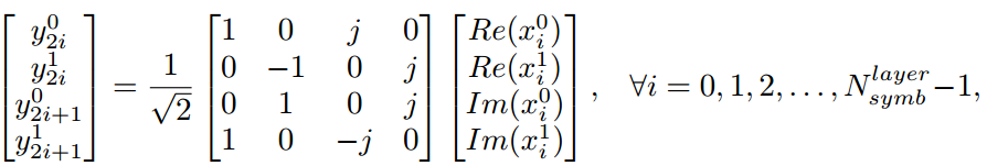 UE仅支持一层用于上行链路。在调制之后,码字的调制符号被映射到一个层。复值调制符号,m0; m1; m2; ::: ;; m N -1,对于码字映射到一层x0 / i = mi,其中i = 0; 1; 2; ::: ;; N sym -11。
