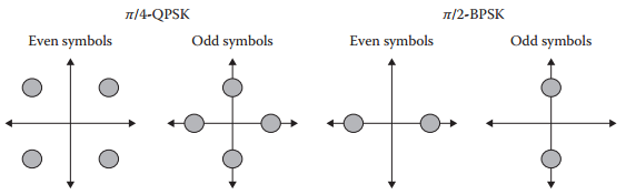 图7.30:π/ 2-BPSK和π/ 4-QSPK星座图。
