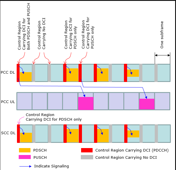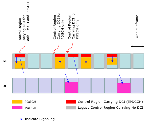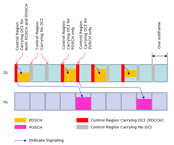 At early LTE (before Rel 10), the operation mode in DCI (Resource Allocation) was pretty simple and straightforward (at least in FDD) as in < Case 1 >. However, as the technology evolves we started setting different variations of DCI operation. Now we have special types of LTE specially designed for IoT/M2M application and DCI operation has been changed even further. In this section, I will try to visualize several typical types of DCI operations as examples just to give you some big picture on how DCI works for PDSCH and PUSCH scheduling.