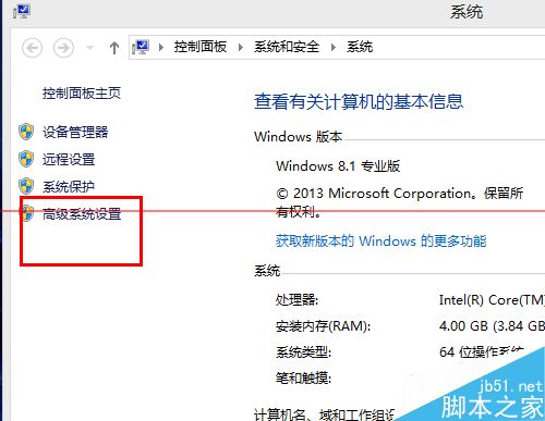 3、在“属性”对话框中,选择“高级系统设置”选项卡。