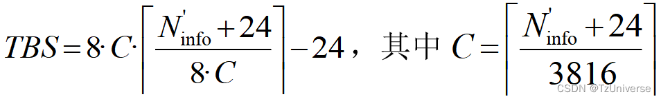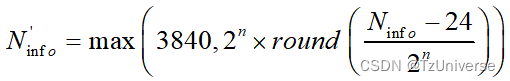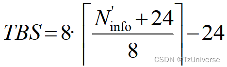 (24:当TBS大于3824后,CRC的大小为24 bit,而在码块分割前需要增加CRC,因此需要保证TB Size加CRC后满足8C的倍数关系。)
