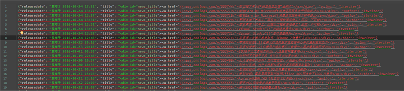 最终,执行main.py后在data.json文件中获取到采集结果的json数据。