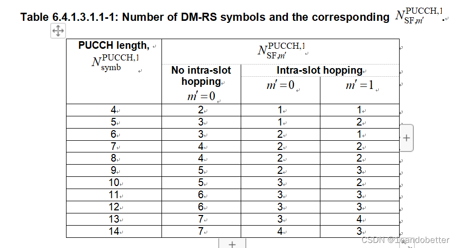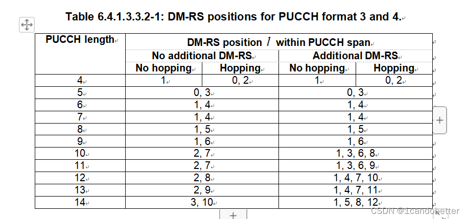 | PUCCH format 3和format 1一样,可以配置跳频来获得频率分集增益。承载参考信号的OFDM符号的位置取决于PUCCH符号数以及是否使用跳频,因为每一跳必须配置至少一个OFDM符号给参考信号使用。 | |