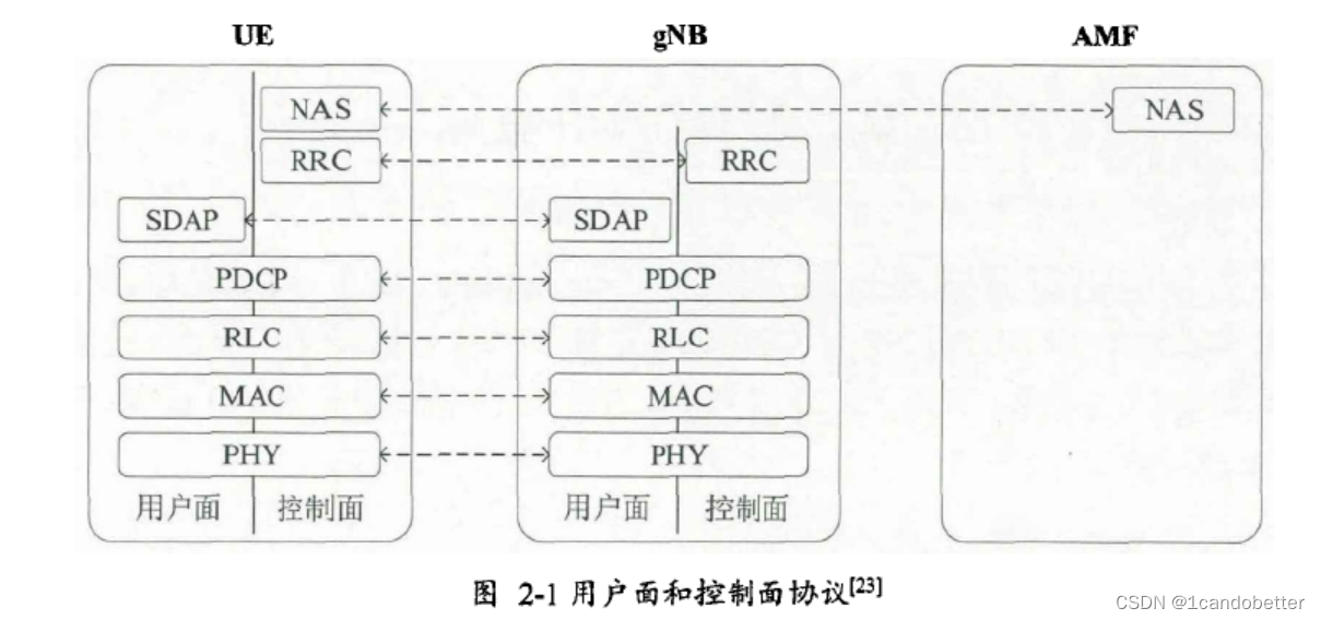 无线接入网的协议栈分为用户面和控制面,如图2-1所示。