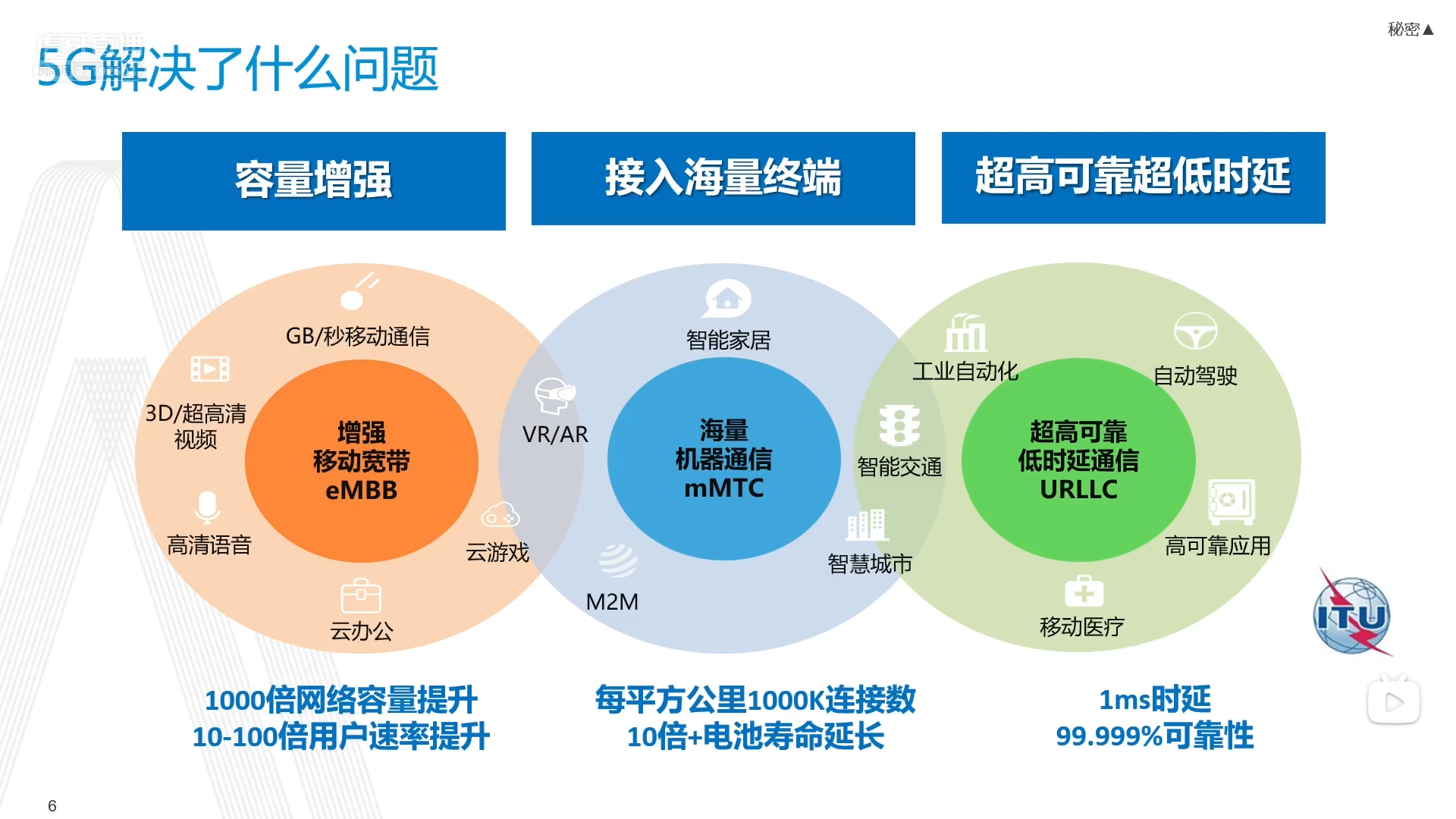 5G 的场景设计就是为了满足新兴产业对于更高传输速率、更大连接数目以及更低时延的需求,图中 1ms 的时延指的是 通信双工的过程,即信息的发送与接收。