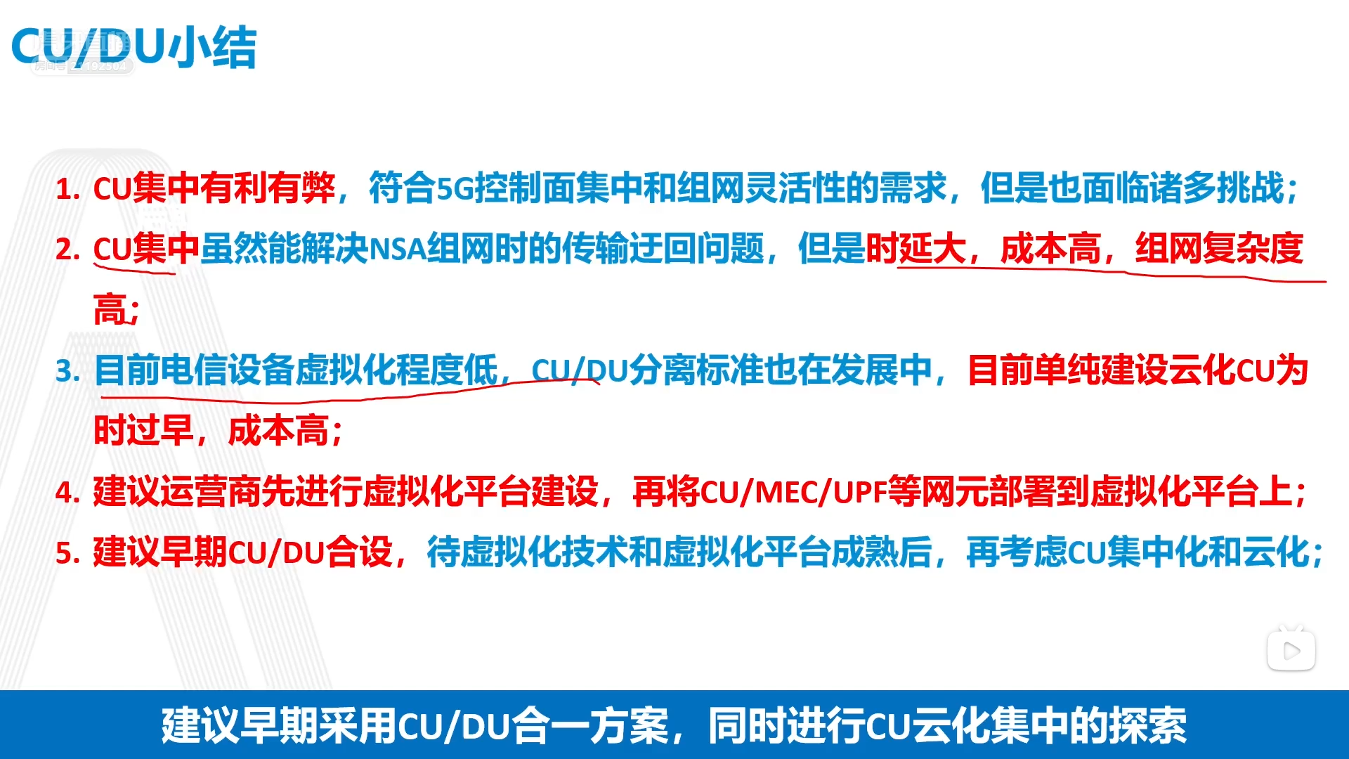 CU云化&DU集中:将 DU 也放在一起,CU 称为云化是因为 CU 是虚拟的产品