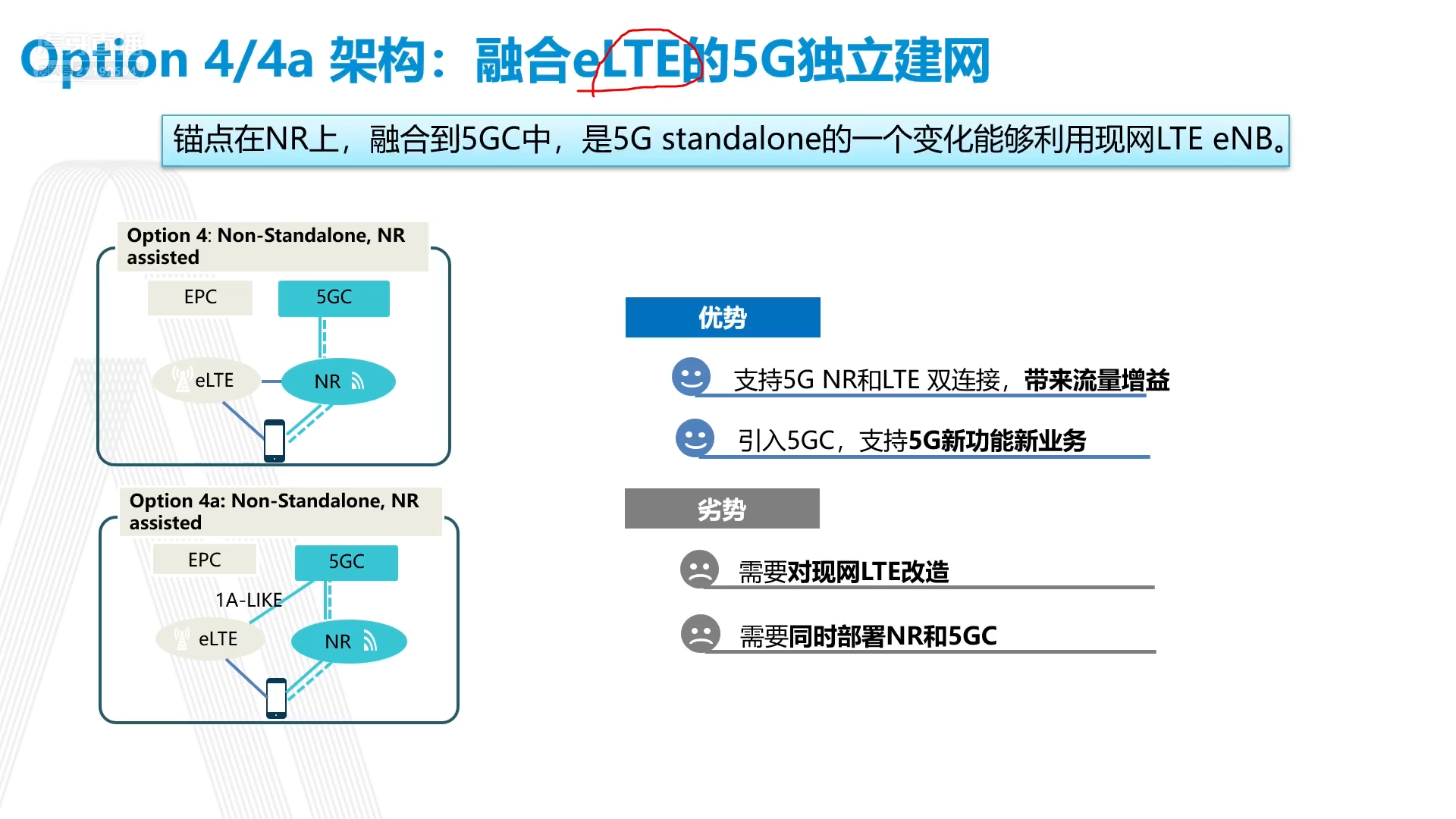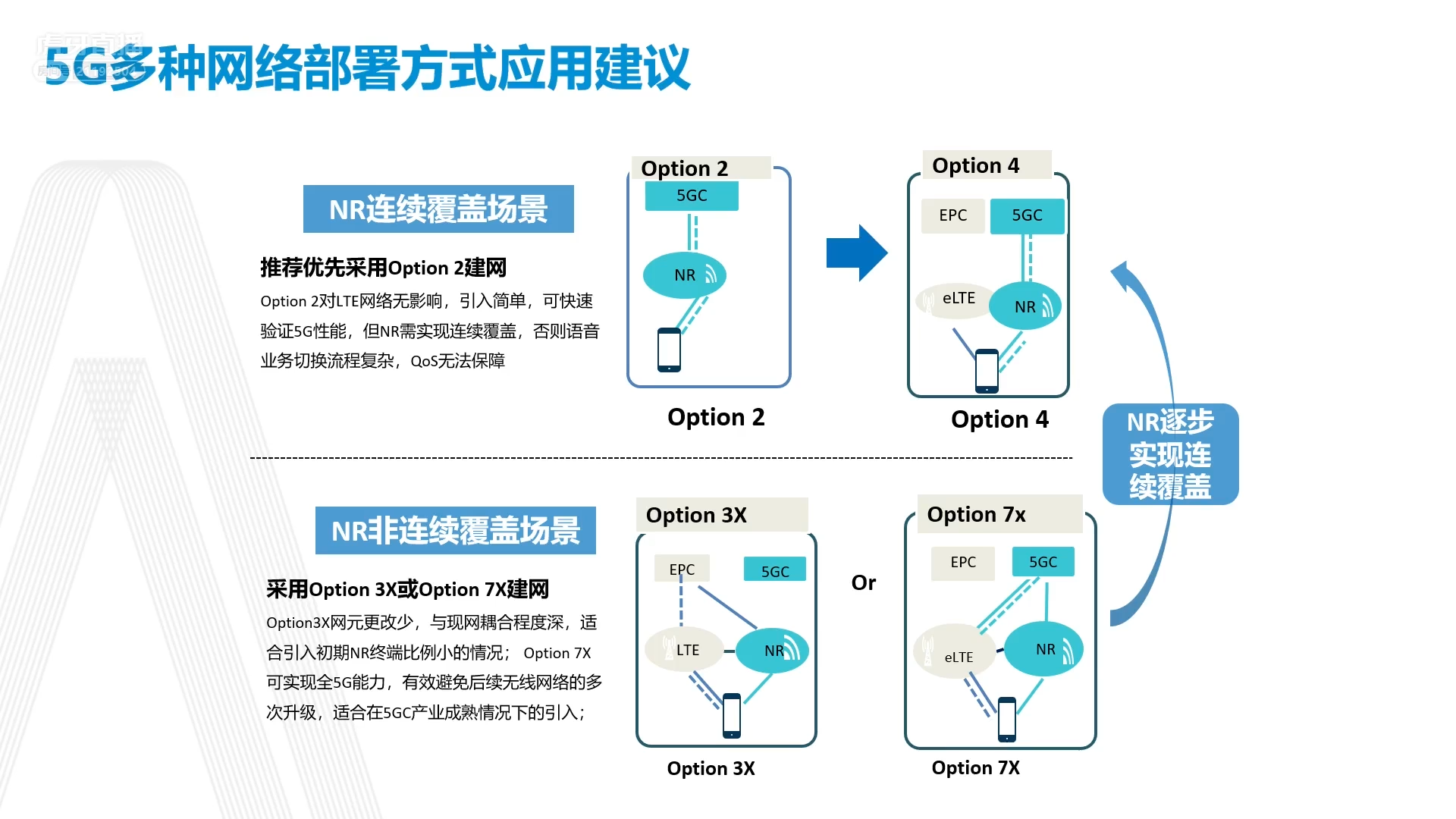 NR 非连续覆盖场景:先部署 5G 基站、NR、5GC,等时机成熟接入 LTE,相对来说过程较为平滑