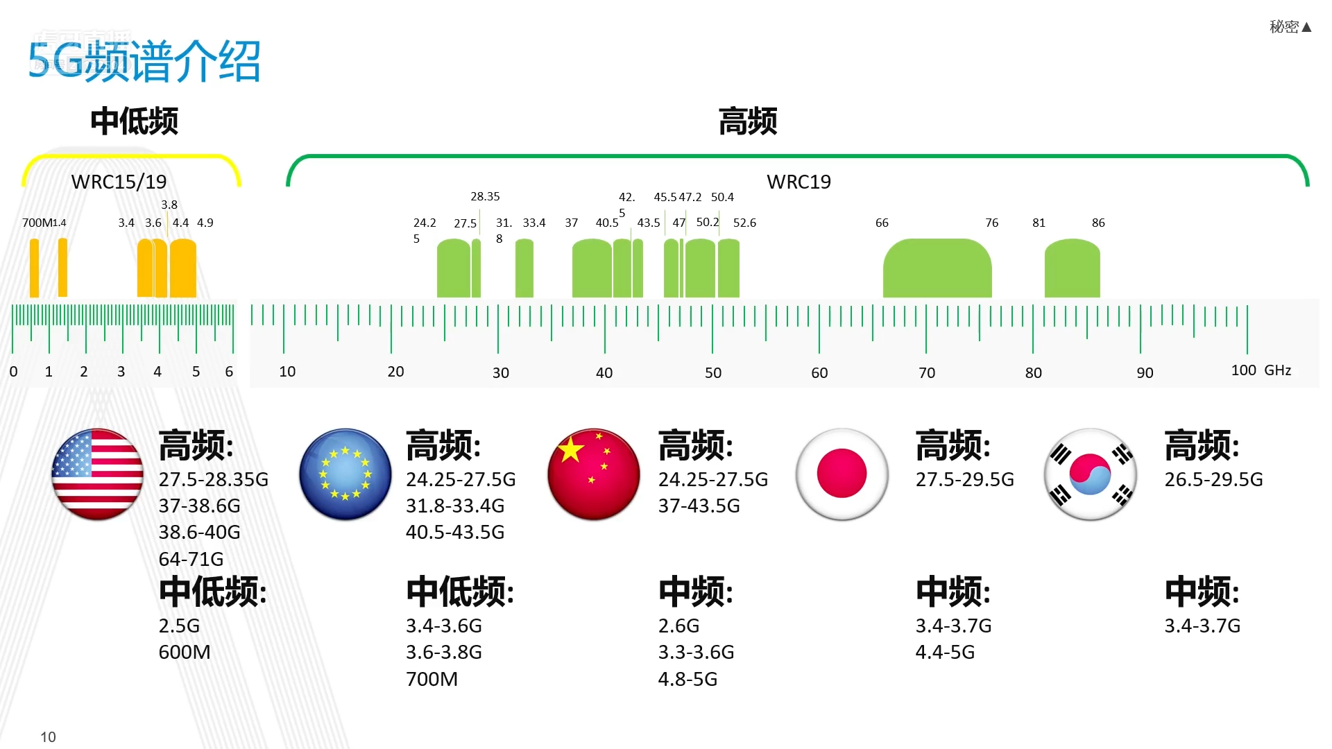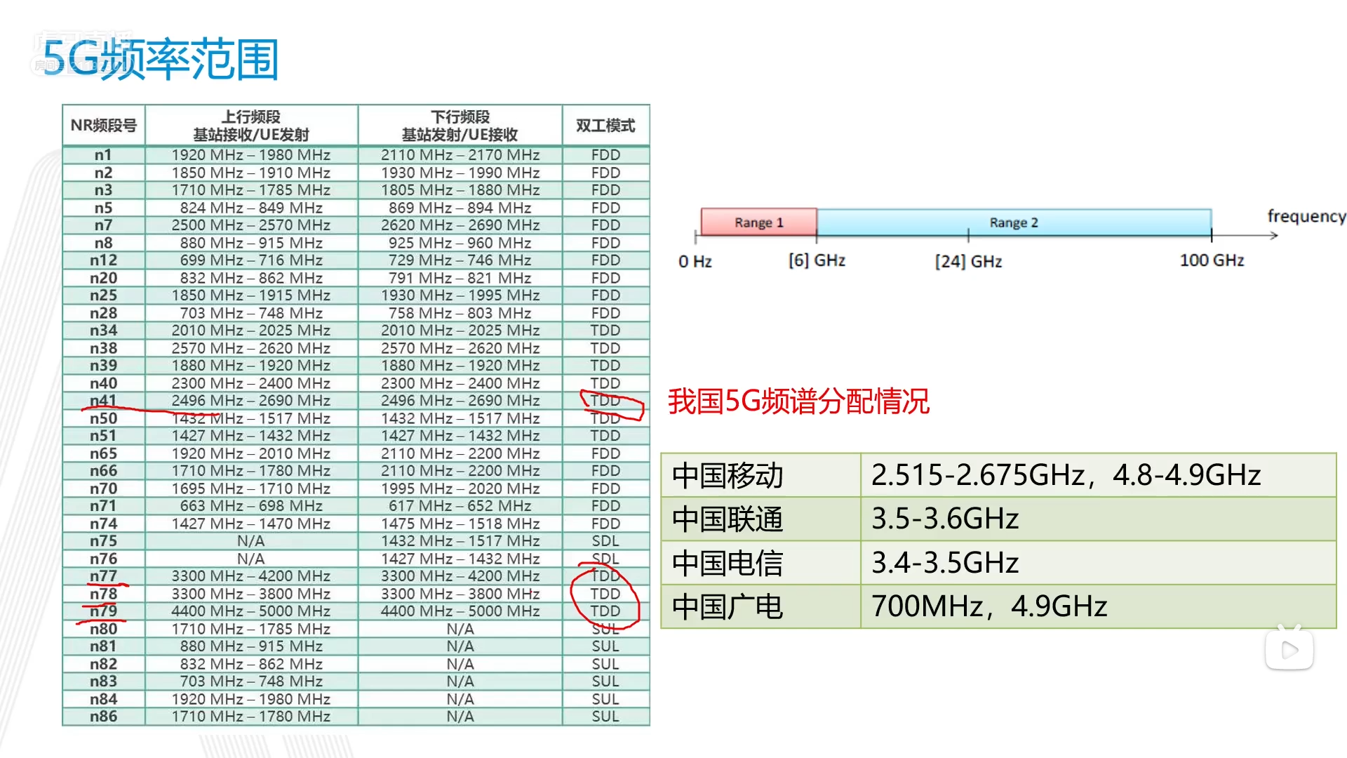 3GPP为NR主要定义了两个频率范围:Sub 6GHz和毫米波,Sub 6GHz称为FR1,毫米波称为FR2