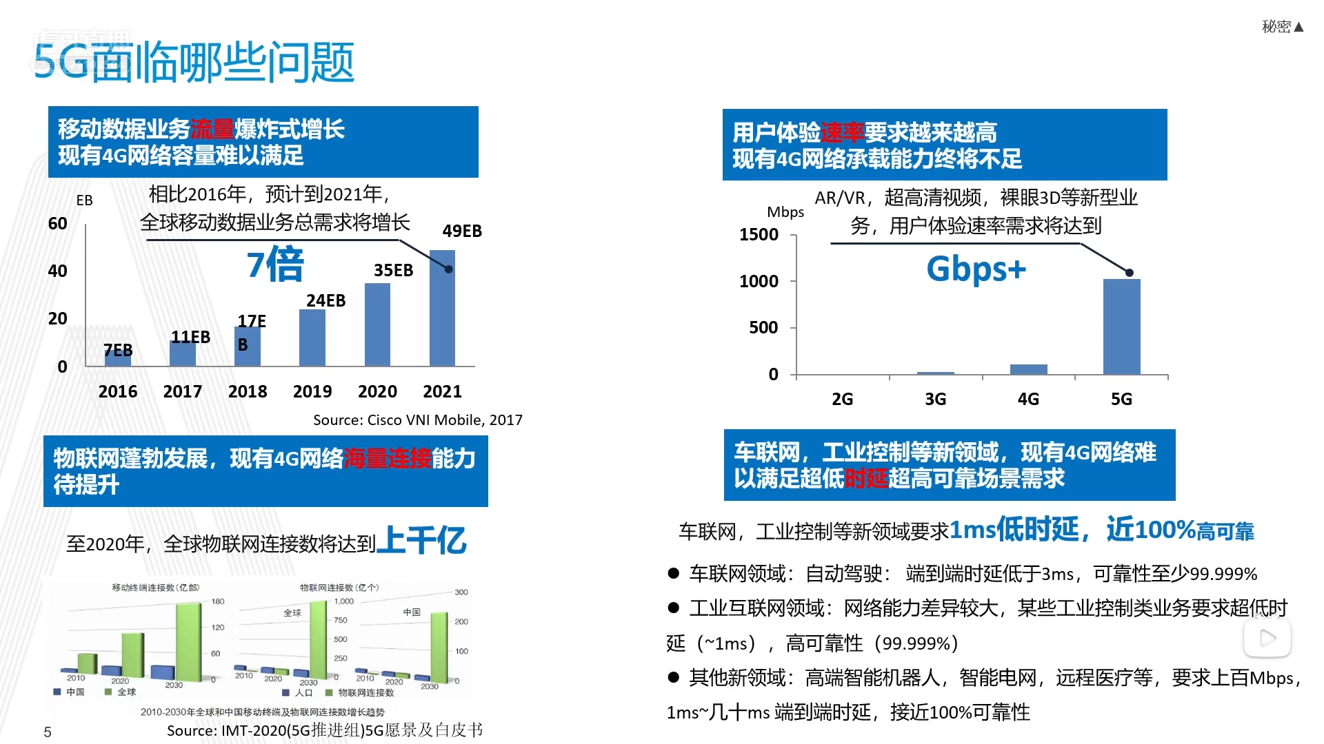 无人驾驶、远程医疗、物联网接入等很多新兴产业技术的发展需要更高的通信速度、更大的连接数量以及更短的时延,4G 网络很难满足这些需求,所以需要更高一级的网络。