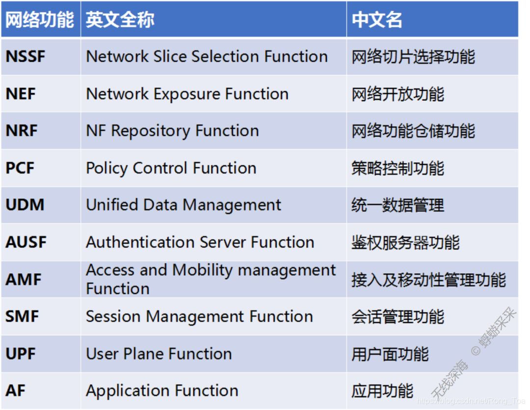 核心网网元:虚拟化之后的网络不再关注底层硬件;那些错综复杂的软件功能模块全部回炉重造,再淬火凝练成为一个个的软件意义上的网络功能(NF,即Network Function)。每个网络功能逻辑上相当于一个网元,并且这些功能都是完全独立自治的,无论是新增,升级,还是扩容都不会影响到其他的功能,这就为网络的维护和扩展提供了极大的便利性。