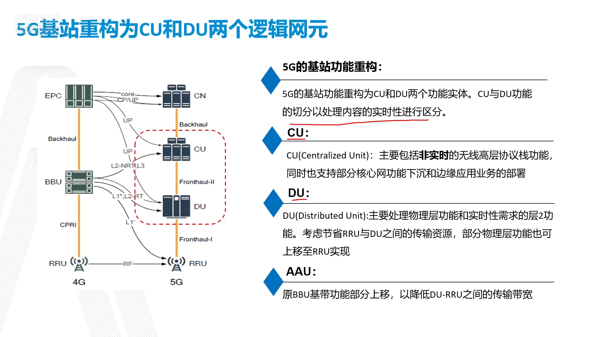(5) 5G基站重构为 CU 和 DU 两个逻辑网元