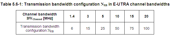 信道带宽限定了允许通过该信道的上下限频率,也即限定了一个频率通带。在一个频带Band中,可以灵活分配若干个不同的信道带宽。LTE系统支持信道带宽灵活可变,有6种可以配置,分别是1.4MHz,3MHz,5MHz,10MHz,15MHz,20MHz。较低的带宽1.4MHz和3MHz,可以方便CDMA2000使用的频谱迁移到LTE,同时帮助促进GSM和TD-SCDMA向LTE的迁移。规定多种带宽的目的是为了适应不同频率的使用场景,比如有些时候可用的频带不足10MHz,那么就可以将LTE系统配置成5MHz使用。