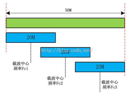 为了唯一标识某个LTE系统所在的频率范围,仅用频带和信道带宽这两个参数是无法限定的,比如中移动的频带40占了50M频率范围,而LTE最大的信道带宽是20M,那么在这个50M范围里是没有办法限定这个20M具体在什么位置,这个时候就要引入新的参数:载波中心频率Fc(简称载波频率)。