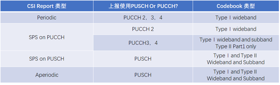 周期性CSI report可以使用PUCCH format2/3/4来支持type1 CSI wideband上报;