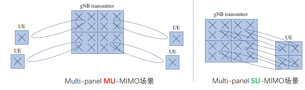 TypeI codebook: 主要用于SU-MIMO,可以提供比较高阶的空间复用,单用户最多可以支持到8个layer。这种场景相对简单,预编码矩阵主要目的focus在使得接收端可以得到比较高的能量。而潜在的layer之间的干扰,主要由接收机的多天线来解决。TypeI codebook又可以分为single pnnel和multiple panel两种类型。