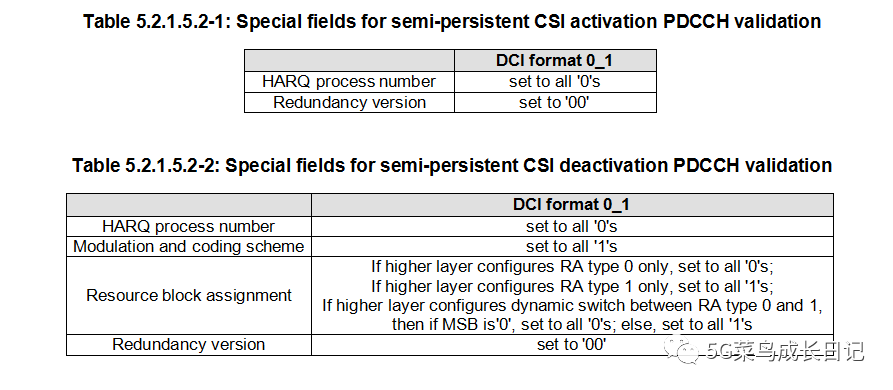 如果是在PUSCH上发送,则使用SP-CSI-RNTI加扰的DCI format 0-1进行激活,其中的CSI Request激活对应的Semi-Persistent CSI Reporting。激活和释放的条件如下。