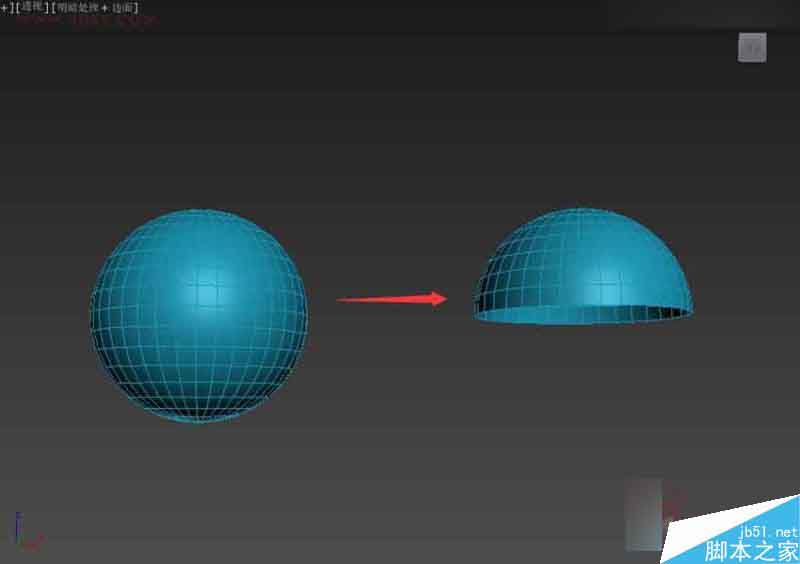 创建球体,转成可编辑多边形之后,删除下半部分的球体.得到我们的半球.