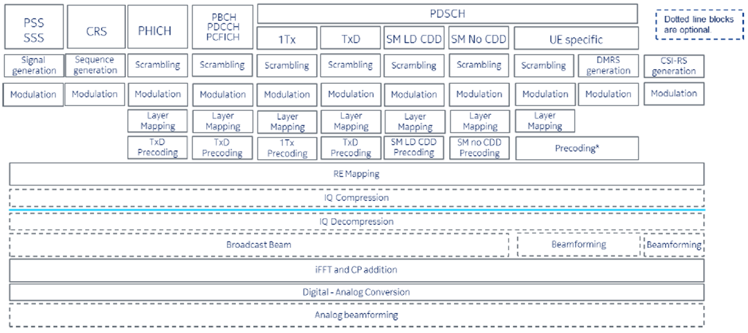(2)PHY_Low:物理层实时部分, PHY_Low的功能下沉到RRU网元中,RRU的网元实体变成了AAU网元实体。 PHY_LOW的主要功能主要涉及到大规模天线矩阵相关的功能,包括xMIMO的映射、