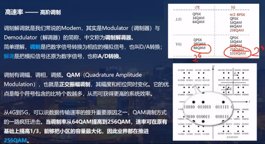 - 正交幅度调制QAM, 通过基带信号的幅度+相位区分0和1