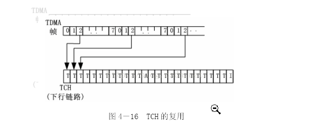 除了映射控制信道以外的时隙均映射业务信道(TCH),映射方法如下图所示,图中仅给出了下行C0上的TS2时隙的映射构成: