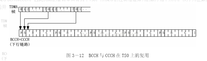 其中,F即FCCH、S即SCH、B即BCCH、C即CCCH、I即IDLE。即使没有寻呼或接入进行,BTS也会再C0上发射,用空闲突发脉冲序列代替。