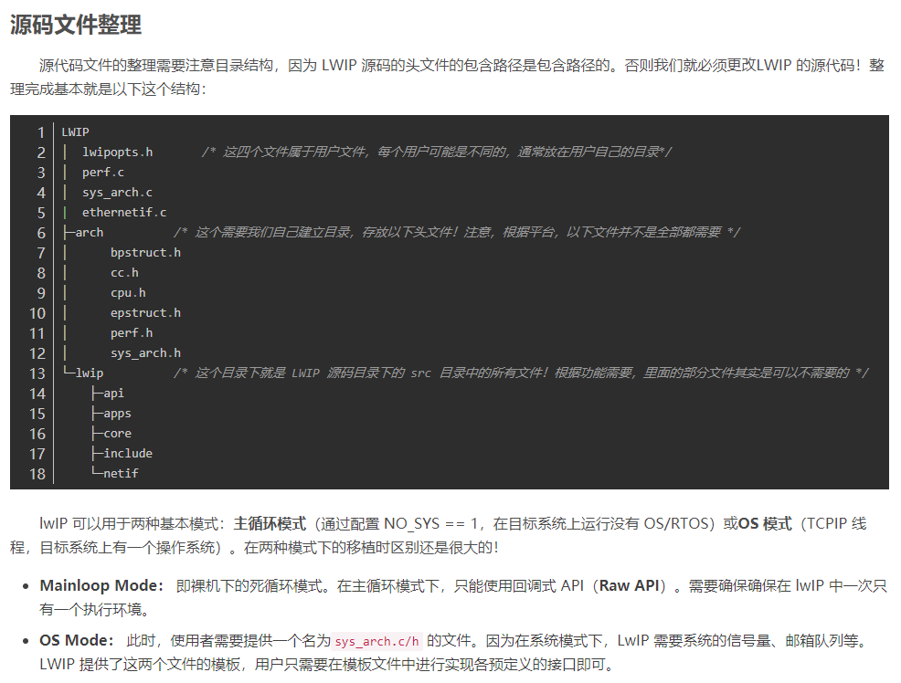 - 运行环境的搭建: 有其需要注意的是,针对嵌入式的移植时,无论哪种模式,都需要首先需要处理硬件资源,例如在 STM32Fx 系列芯片移植时,需要提供文件:stm32f4x7_eth_bsp.c/h,已处理使用的硬件资源。