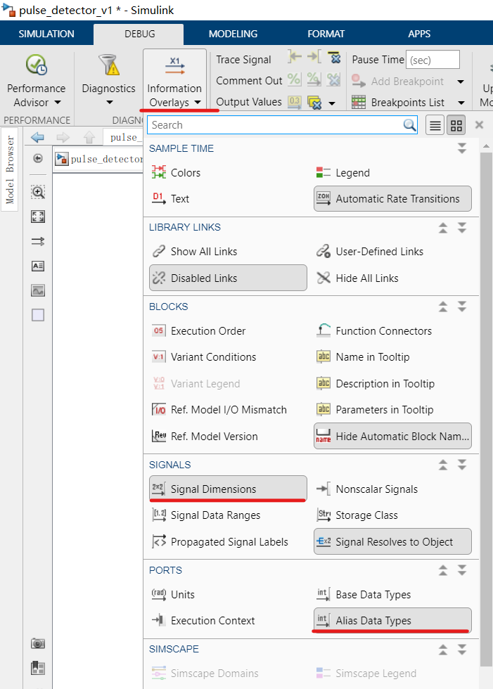 创建一个Simulink模型命名为pulse_detector_v1.slx;