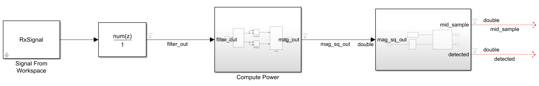 封装第8步的模块为一个子系统并命名为Compute Power标记子系统的输出为mag_sq_out。