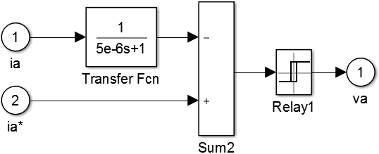输入电流采样值和参考值,让它们相减,然后把结果输入滞环模块。滞环模块配置如下: