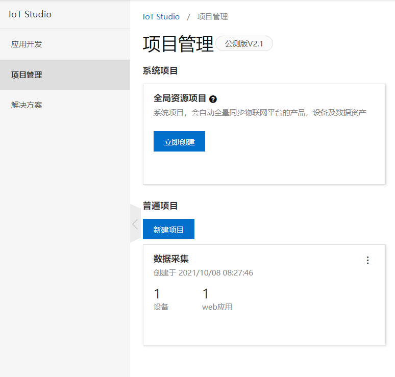 4.在左侧的侧边栏选择项目管理,创建一个普通项目