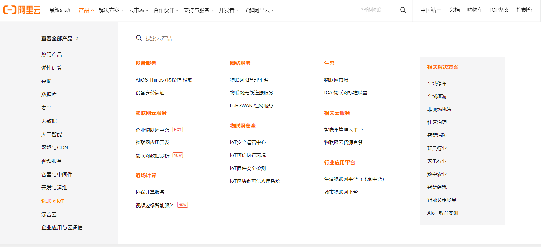 2.打开产品这一栏,选择一项你想要添加的产品类别(这里以物联网项目为例子)