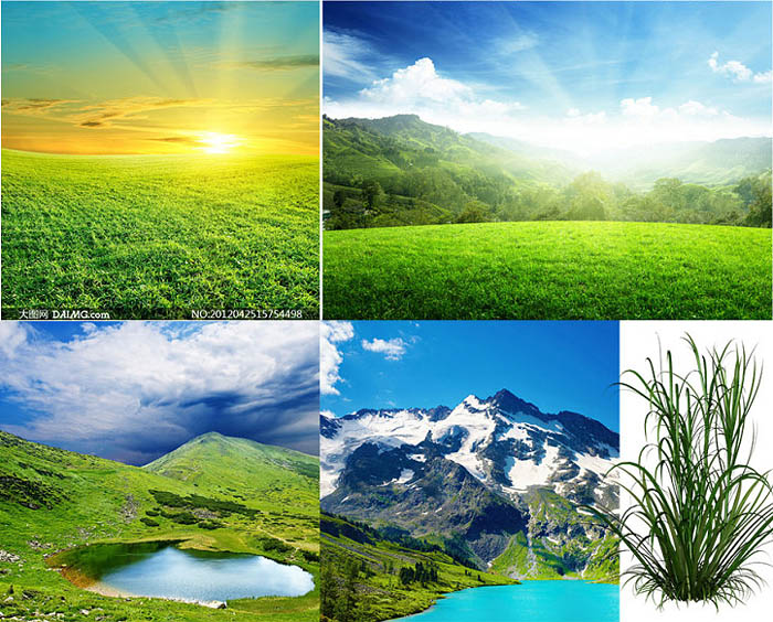 中间比较简单,只接用一层树木就可以了,中景也带有一些模糊。我们需要用的就是下面这种素材中标注的部分。其它部分我们只需要黑色模糊掉,所以我们要重新补一层草坪。因为后面我们还要在草坪上用另外一张草坪,万一那张草坪某个角落不够用,现在这张草坪正好可以补上去。