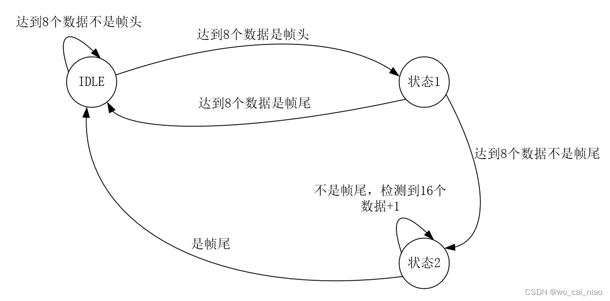 解:这明显是一个状态机,定义3个状态:IDLE、状态1、状态2