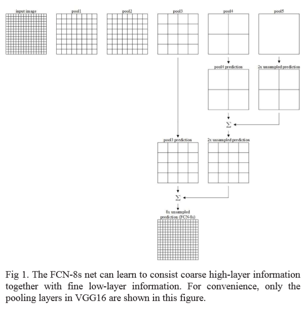 - 为了构建vg16的fcn-8s网络,在pool4层的顶部添加1×1卷积层以生成pool4预测(fcn-32s网络),在conv7(卷积fc7)的顶部添加2×上采样层以同时生成conv7预测。然后将两个预测融合在一起,并将它们作为一个保险丝输出(FCN-16S网络)进行求和。类似地,在pool3层的顶部添加另一个1x1卷积层以生成pool3预测。 然后将预测与混合输出的预测的2倍上采样融合在一起。