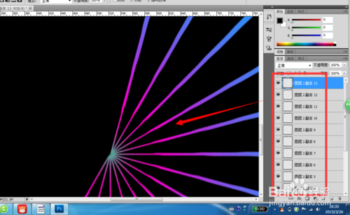 设置上方参数旋转角度为15度,然后按快捷键Ctrl+J复制一个新图层,再按CTRL+ALT+SHIFT+T重复复制图形。