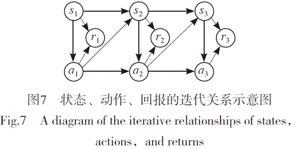 强化学习问题的基本结构是交互[13],一个智能体处于一个环境中,在每一个时间,智能体做出一个动作(a),然后从环境中获得观测量(状态量s)以及回报(收益r),强化学习的学习目标是:如何在未知环境中采取一系列行为,来最大化智能体收到的(总)累积回报(收益)。这个交互过程在一个时间段内状态、动作、回报的迭代关系如图7所示。强化学习具有以下特点:本质上是闭环系统,输入和输出相互依赖;反馈是延时的,不是即时的,一个动作的影响可能几步之后才会体现;没有直接的指导告诉该怎么做,只有回报函数;时间很关键,观测量、回报等是关于时间的序列,不满足独立同分布假设;智能体的动作直接影响到它之后收到的数据。