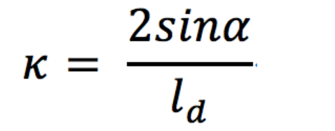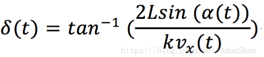 其中 κ 是计算出来的圆弧的曲率,那么前轮的转角 δ 的表达式为:![]()