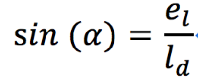 这里我们把时间考虑进来,在知道t时刻车身和目标路点的夹角 α(t)α(t) 和距离目标路点的前视距离 ldld 的情况下,由于车辆轴距 LL 固定,我们可以利用上式估计出应该作出的前轮转角 δδ ,为了更好的理解纯追踪控制器的原理,我们定义一个新的量:elel —— 车辆当前姿态和目标路点在横向上的误差,由此可得夹角正弦:
