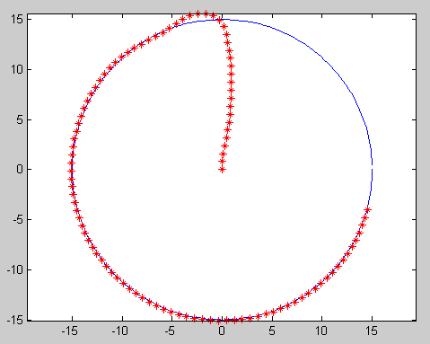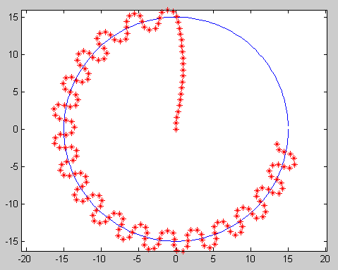 利用Matlab可以得到该算法跟踪一个圆形轨迹的效果如下图所示。