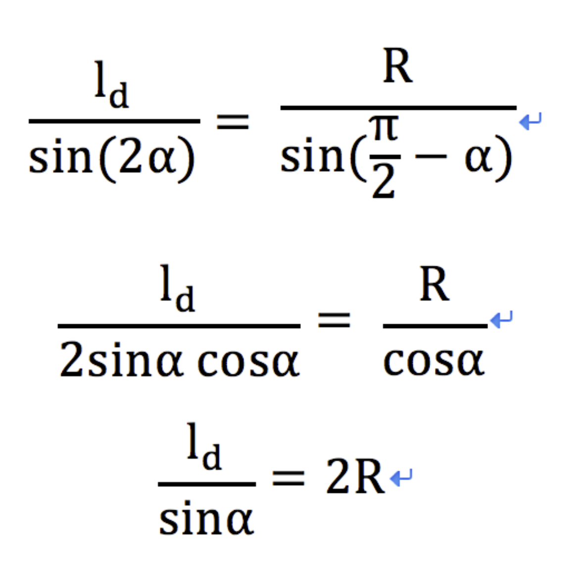 图中 (gx, gy)是我们下一个要追踪的路点,它位于我们已经规划好的全局路径上,现在需要控制车辆是的车辆的后轴经过该路点,表示车辆当前位置(即后轴位置)到目标路点的距离, 表示目前车身姿态和目标路点的夹角,那么更具正弦定理我们可以推导出如下转换式: