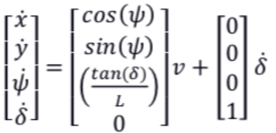 因此,根据运动学方程,可得到前轮转角????为: