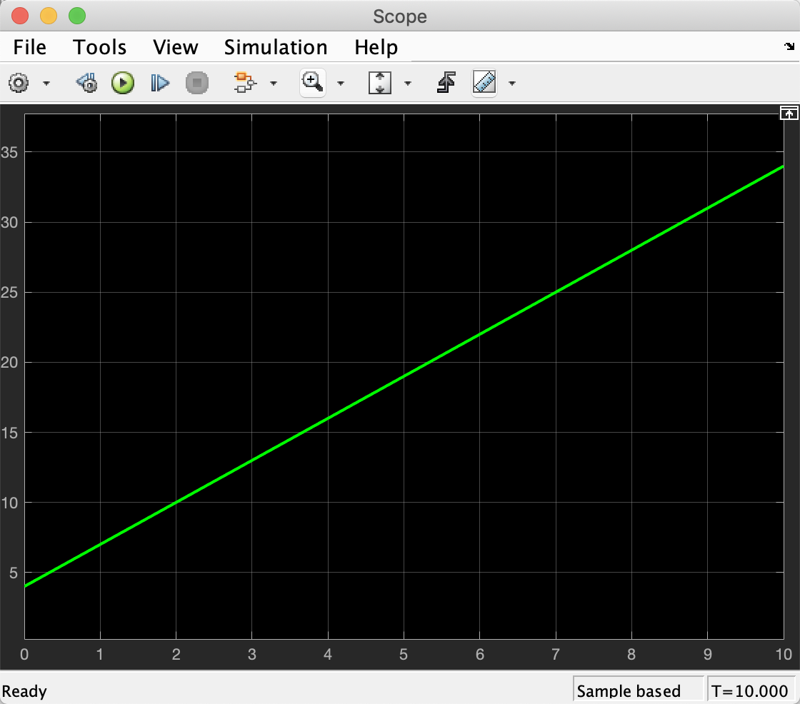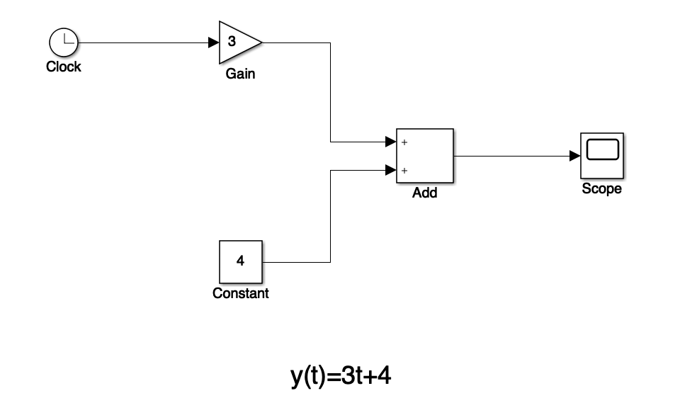 y(t)=3t+4,进行simulink仿真。函数模型很简单,只需要布置几个模块即可,如图1-1所示。