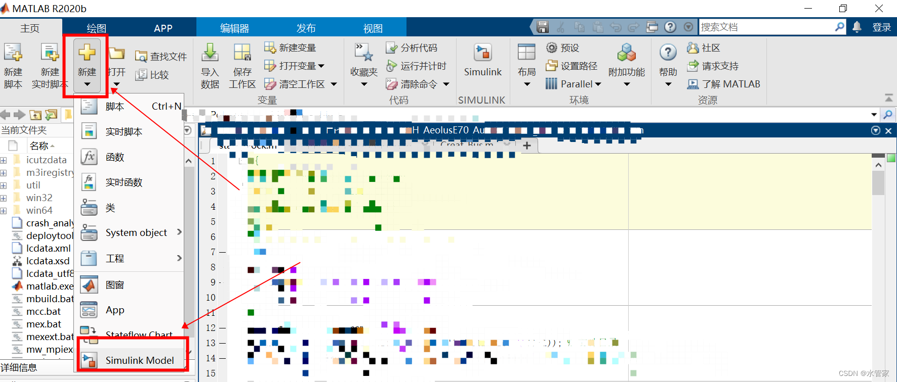 (3) 单击MATLAB主页选项中的新建按钮“新建->SimulinkModel模型”。