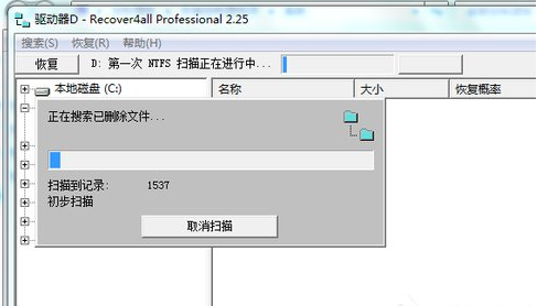 3、如果你曾经删除过很多的文件,并且你的磁盘驱动器很大,将会需要较长的时间,而且如果你所删除文件的这个驱动器再次写入过文件,那么这些文件很可能已经被覆盖,虽然也是有可能被搜索出来,但是可以完全恢复的机率已经非常小了。